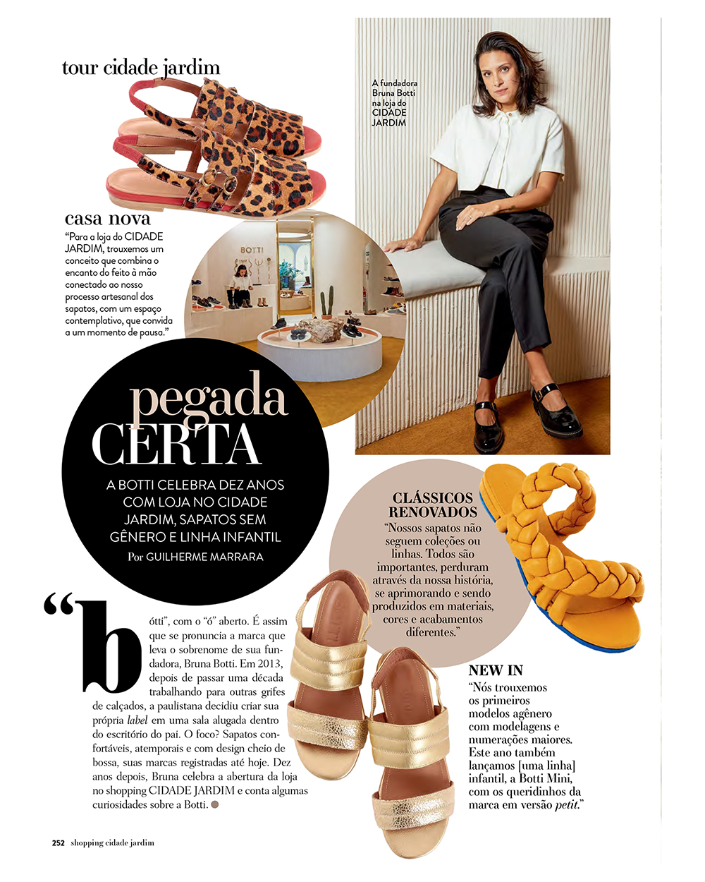 "Nós trouxemos os primeiros modelos sem gênero, com modelagens e numerações maiores. Este ano também lançamos uma linha infantil, a BOTTI mini, com os queridinhos da marca em versão petit."